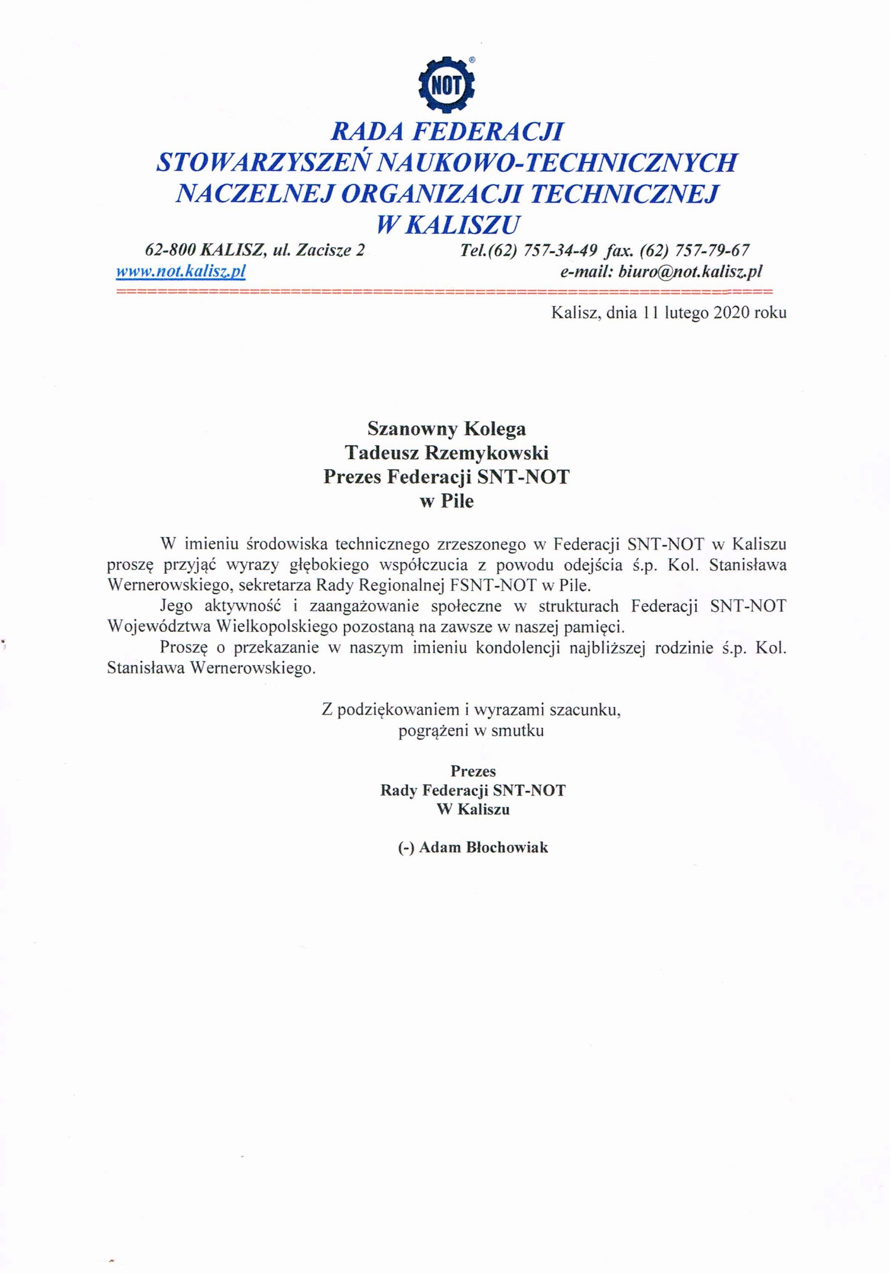 FEDERACJA STOWARZYSZEŃ NAUKOWO-TECHNICZNYCH NACZELNEJ ORGANIZACJI TECHNICZNEJ RADA REGIONALNA W PILE